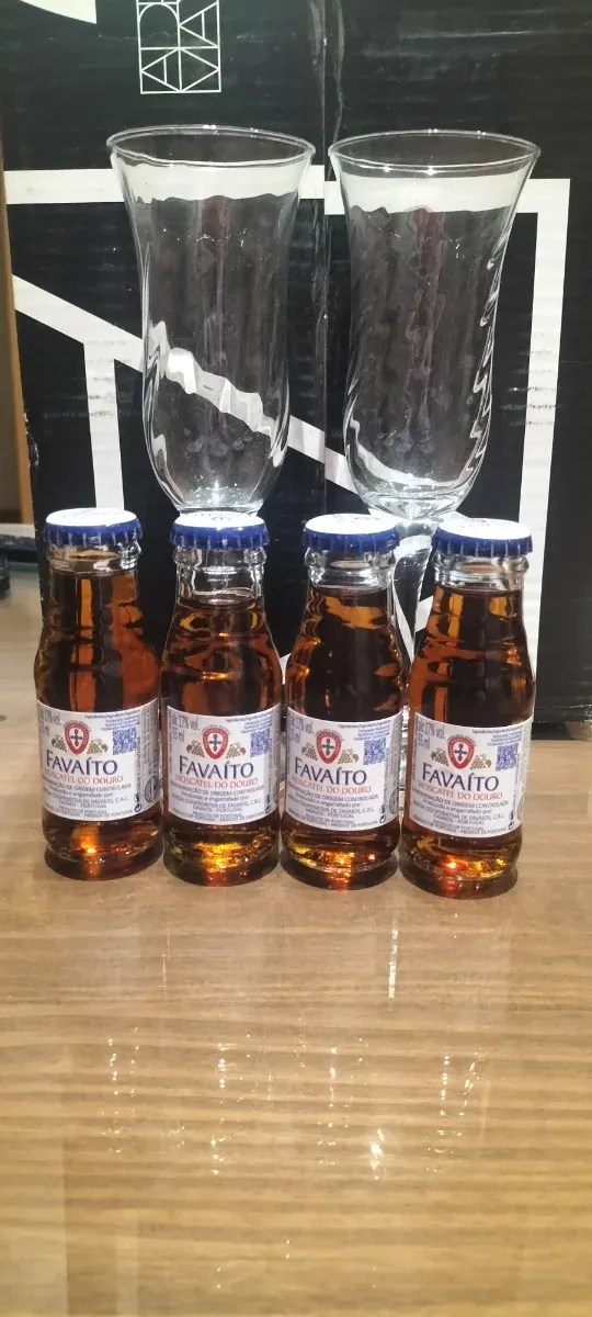 Lote de 4 botellas de Favaìto Moscatel. - Botellas de 200ml cada una. - Ideal para coleccionistas o para disfrutar de un buen moscatel.