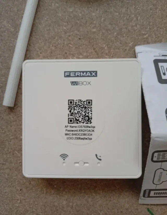 Dispositivo Fermax WIBOX para desvío de llamadas. - Nombre de AP: IDS7938w2qa - Contraseña: XRQYOADK - MAC: B48DC238E3D4 - UDID: 2306aeftw2qa