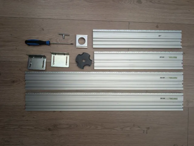 Detalles del productoSistema de guía paralela Festool MFS 700. Incluye varios accesorios para su montaje y uso.