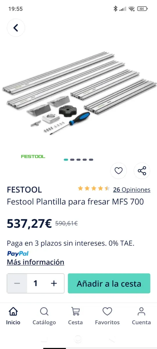 Plantilla para fresar Festool MFS 700. - Guías de aluminio. - Incluye accesorios.