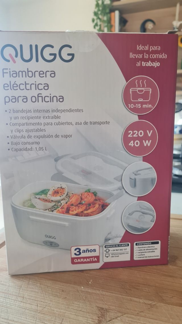 Fiamvrer eléctrica, usada un par de veces, sirve para calentar la comida en la oficina. No sirve para mechero del coche. Capacidad 1,05 l. Bajo consumo