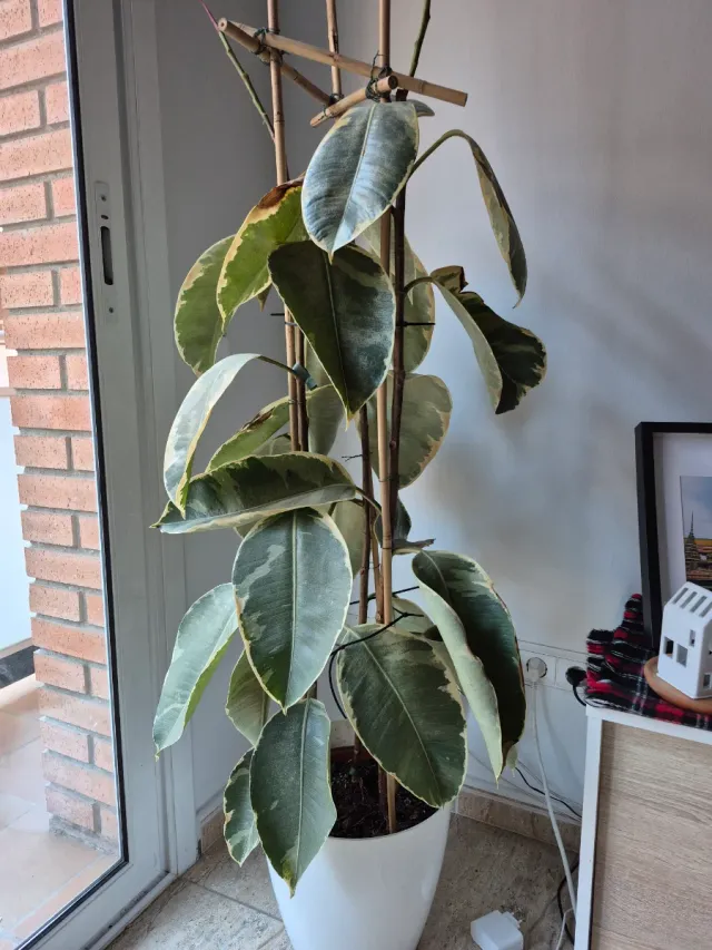 Detalles del productoPlanta Ficus Elastica con tres troncos.