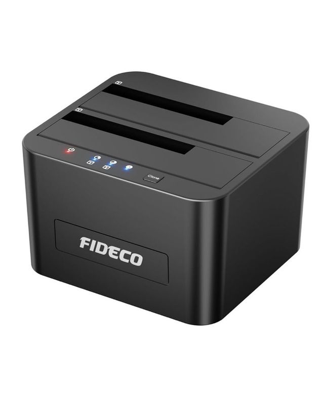 Detalles del productoFIDECO Estación de acoplamiento HDD, estación de acoplamiento de disco duro USB3.0 para 2.5 y 3.5 pulgadas SATA HDD/SSD, doble bahía, soporte de clon sin conexión