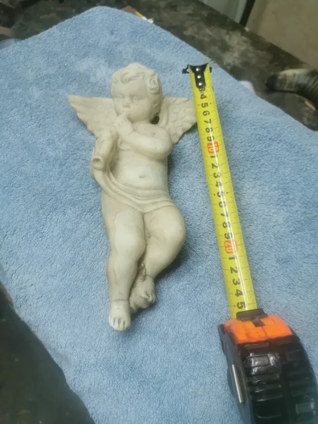 Figura decorativa de un angelito, elaborada en mármol sintético. PARA COLGAR A LA PARED - Diseño detallado. - Ideal para coleccionistas o decoración.