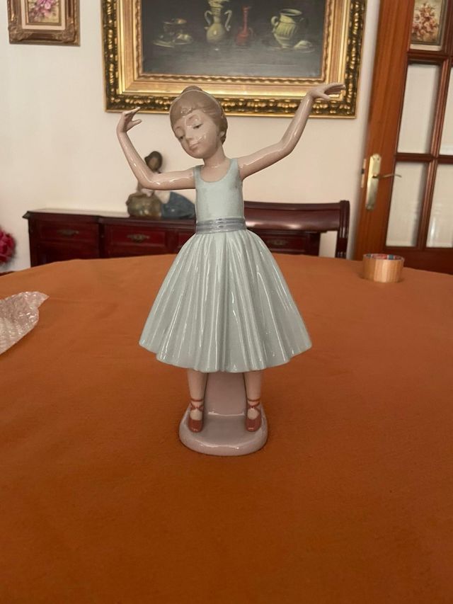 Figura de porcelana de una bailarina de Lladró. Representa a una joven bailarina en una pose elegante. - Diseño detallado. - Acabado brillante.