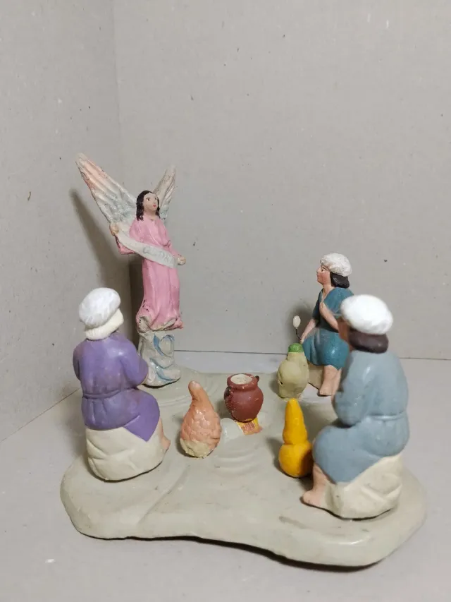 Figuras reliazas en terracota.Hechas y pintadas a mano con gran detalle y realismo.Medidas totales 11x13x14cm.
