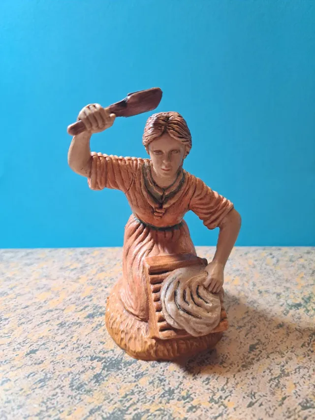 Detalles del productoFigura de belén que representa a una mujer lavando ropa, material de plastico duro.Marca Oliver.Medidas en las fotos. Tengo más figuras en mi perfil. Hago envíos bien protegidos.