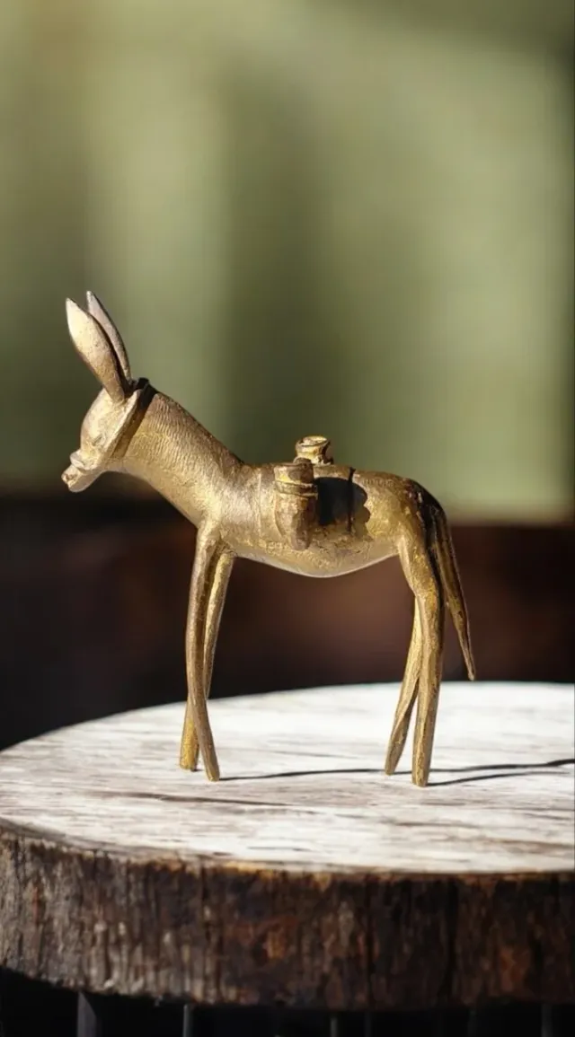 Detalles del productoExclusiva escultura artesanal africana en bronce macizo, representando un burro cargado con alforjas.