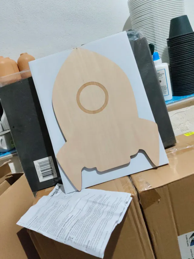 Figura decorativa de madera con forma de cohete. Ideal para habitaciones infantiles o como objeto de decoración. - Diseño de cohete. - Material de madera. - Sin usar.