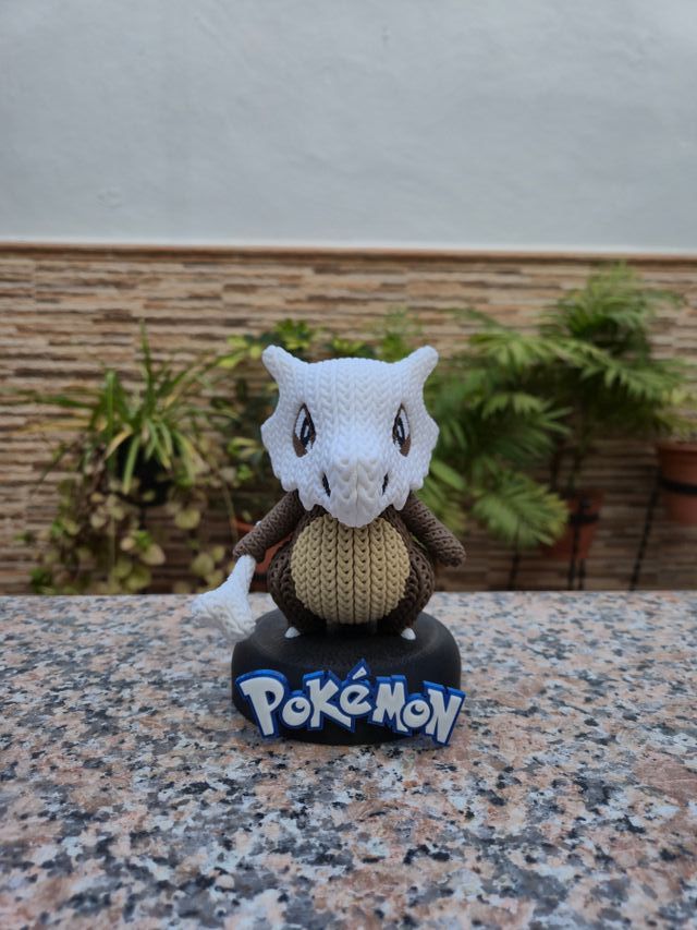Detalles del producto💥Preciosa figura de Cubone hecha en impresión 3D. Tiene un acabado efecto crochet que la hace súper llamativa y original, perfecta para decoración coleccionista o para regalar.