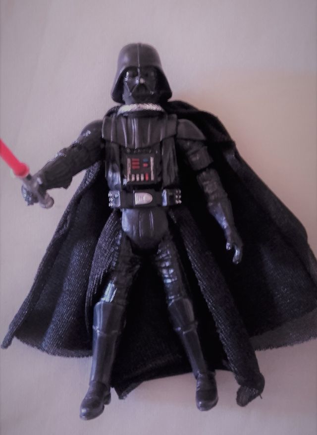 Figura de acción del más mitico e icónico personaje de la guerra de las galaxias. Con su capa de tela y sable de luz.