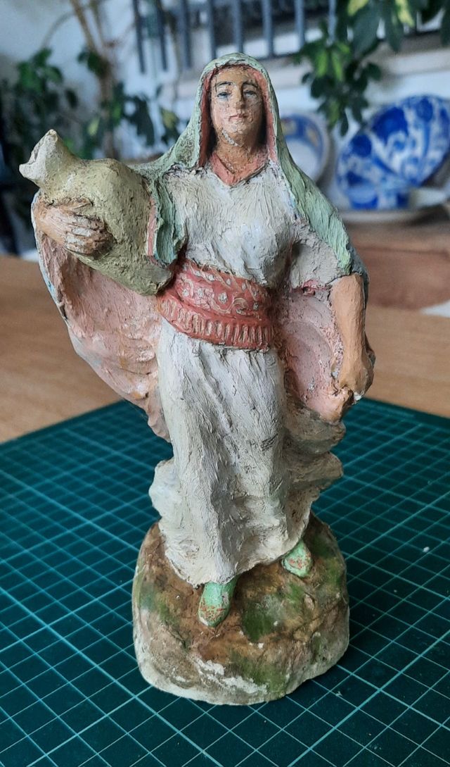 figura de belèn de barro. 15 ctms. es muy antigua y pesada. parece que fuese de los inicios de Mariscal. muy interesante y original. ningún desperfecto