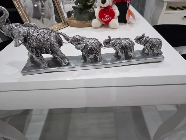 Detalles del productoConjunto de figuras decorativas de elefantes.