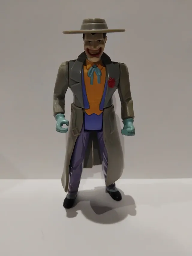 Detalles del productoFigura de acción del Joker con sombrero y gabardina. Fabricada por Kenner. Dificil de conseguir. Batman: la serie animada/ the animated series