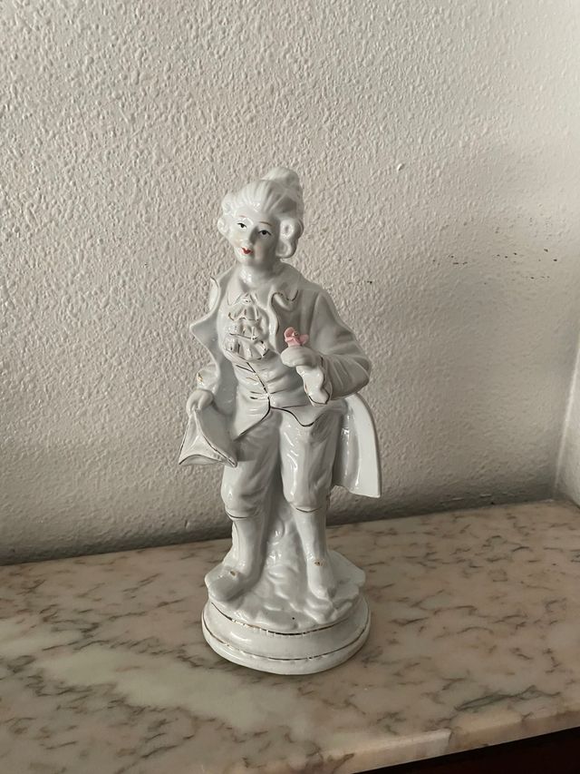 Detalles del productoElegante figura de porcelana con un diseño inspirado en la moda francesa.