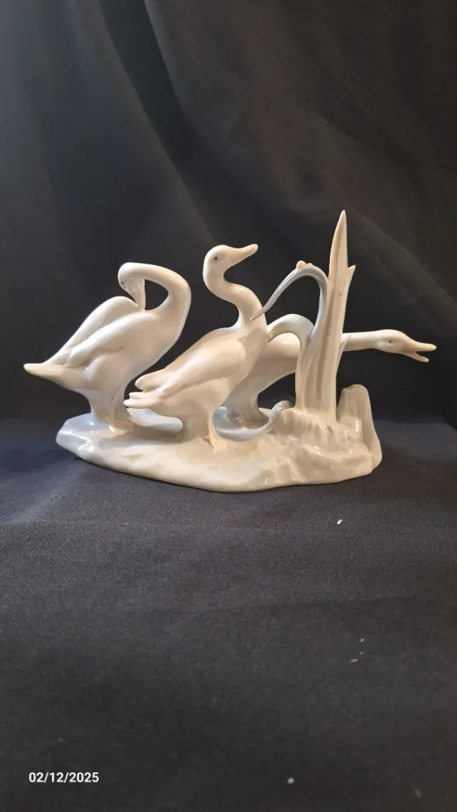 Detalles del productoElegante figura de porcelana de la reconocida marca Lladro. Representa un grupo de aves acuáticas en un entorno natural.