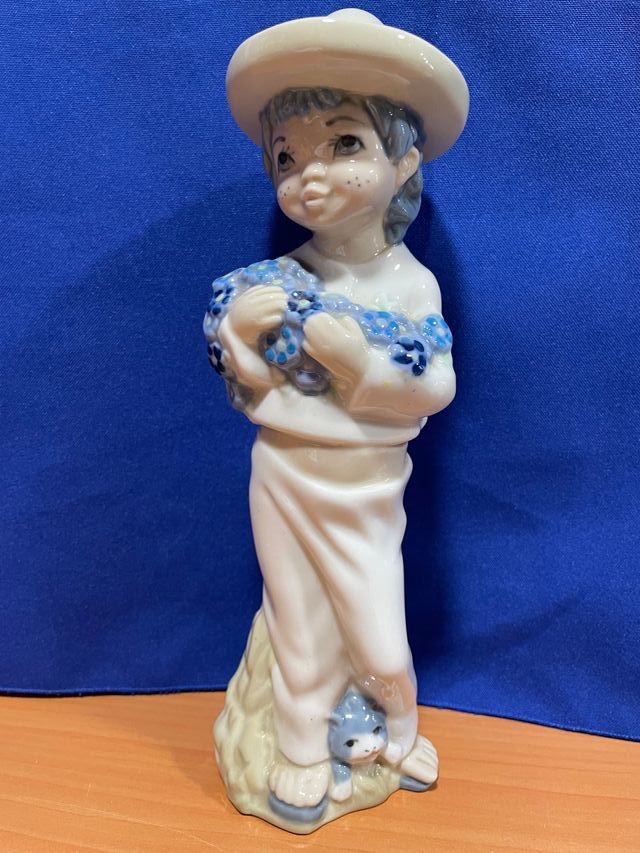Detalles del productoFigura de porcelana de la marca Casades, representando a un niño con flores.