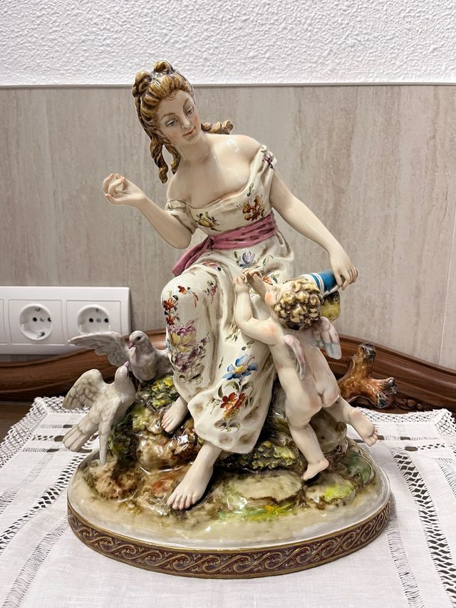 Detalles del productoPreciosa figura de mujer con 2 palomas y un ángel, creación del reconocido escultor catalán Salvador Mallol Soler (1898-1977), famoso por sus detalladas figuras esmaltadas.