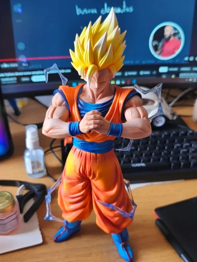 Figura de Goku en su transformación Super Saiyan 2. - Detallado diseño del personaje. - Colores vibrantes en el cabello y traje.