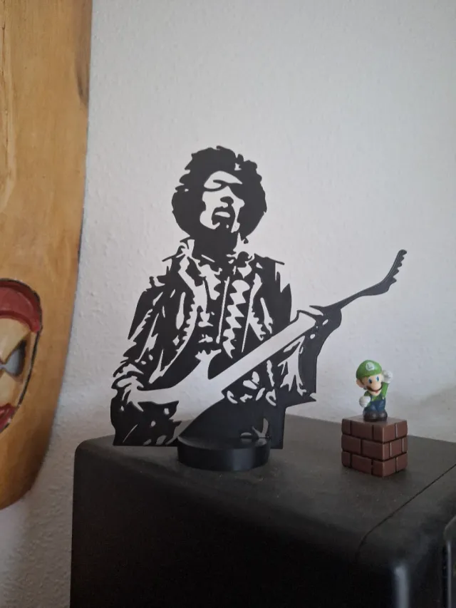 Figura decorativa de Jimi Hendrix tocando la guitarra. - Diseño en silueta negra. - Base negra para soporte. Wall art