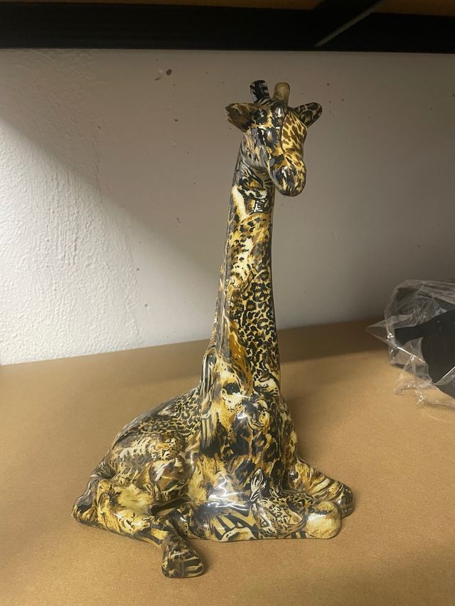 Detalles del productoFigura decorativa de una jirafa con un diseño de estampado animal llamativo. Añade un toque salvaje a tu espacio.