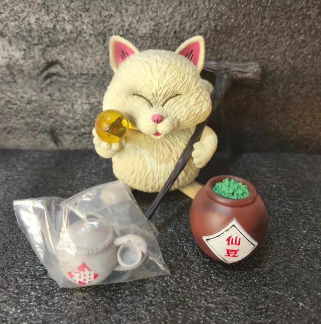Figura coleccionable del personaje Karin de Dragon Ball. - Incluye accesorios como una esfera del dragón, tarro alubias y tetera.