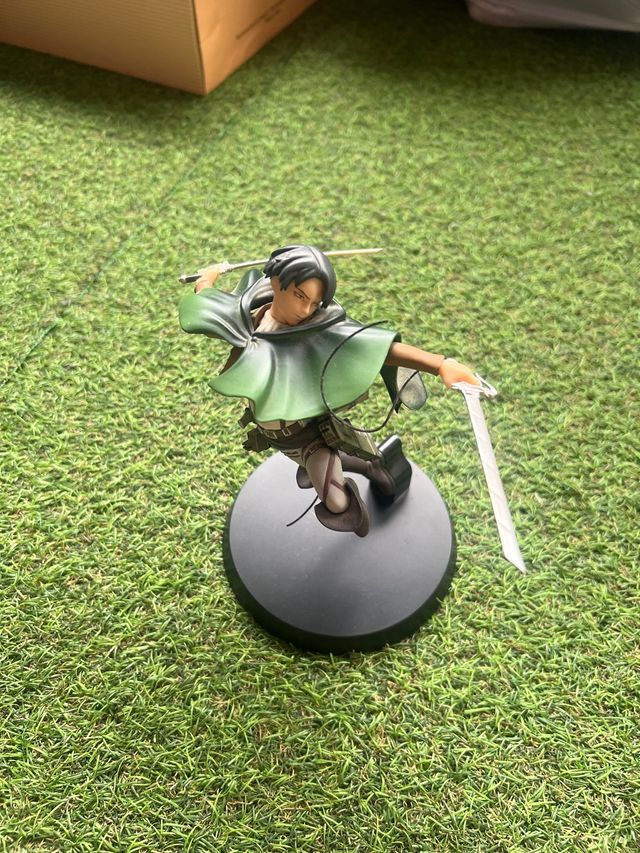 Detalles del productoFigura de acción de Levi Ackerman de Shingeki no Kyojin. La figura está en buen estado, los cables de las espadas han saltado pero se pueden volver a arreglar.