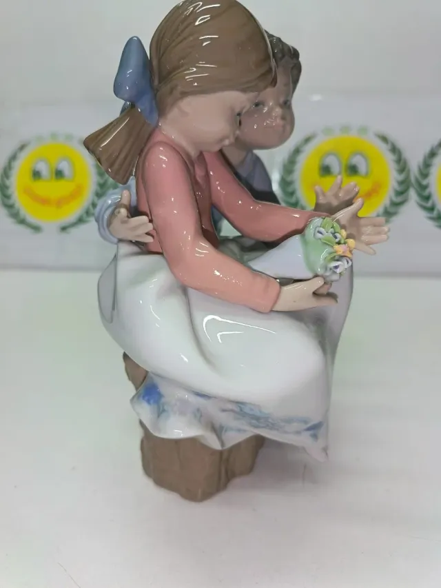 Detalles del productoFigura de porcelana Lladró Primer Cortejo. Representa a dos niños abrazados, uno de ellos ofreciendo un ramo de flores.