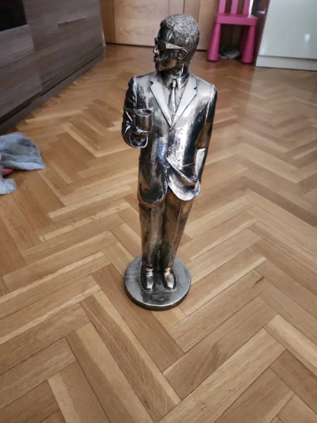 Figura decorativa de coleccionista de la marca Martini. Un objeto distintivo para tu hogar. - Diseño elegante y detallado. - Acabado metálico brillante.