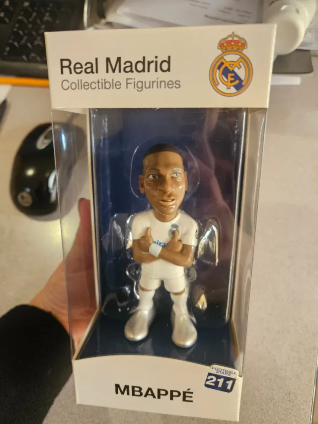 Figura coleccionable de Mbappé del Real Madrid. - Altura aproximada de 12 cm. - Diseño detallado del jugador.