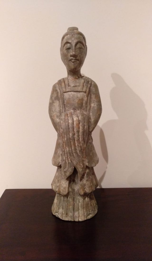 Figura oriental de resina o papel maché imitando terracota. 42 cms. de altura. En perfecto estado, como nueva.