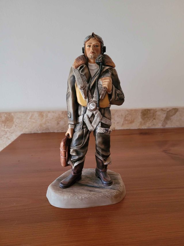 Detalles del productoFigura detallada de un miembro de la tripulación de bombarderos de la Royal Air Force (RAF) de la Segunda Guerra Mundial, entre 1941 y 1944. Representa a un aviador con su equipo característico. This figure is dedicated to the aircrew of R.A.F bomber command, limited eidtion of 250 produced exclusively for the history of porcelain company