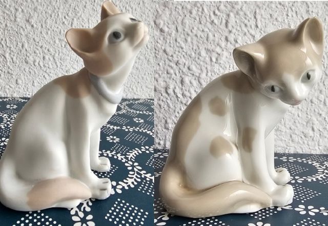 Figuras de porcelana de Tang - Rosal, inicios de Lladró. Uno de los gatos tiene un pequeño desperfecto en una oreja.