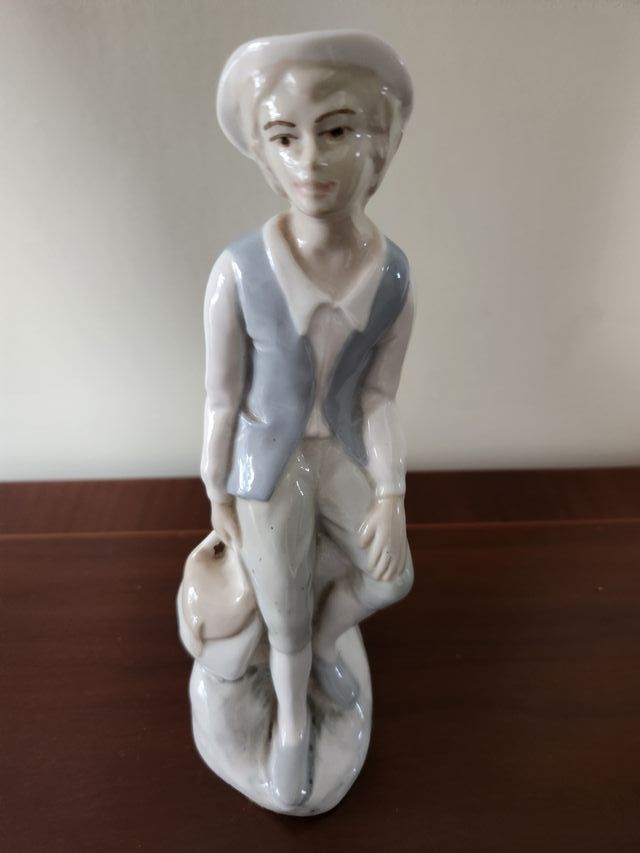 Figura de porcelana de un niño pastor, una pieza vintage. - Diseño detallado. - Acabado en tonos pastel. Size H 19cm W 6 cm