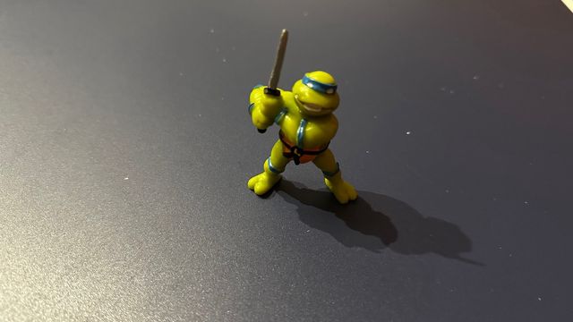 Figura de PVC de Leonardo de las Tortugas Ninja, fabricada en 1988. - Personaje: Leonardo. - Material: PVC. - Año: 1988.