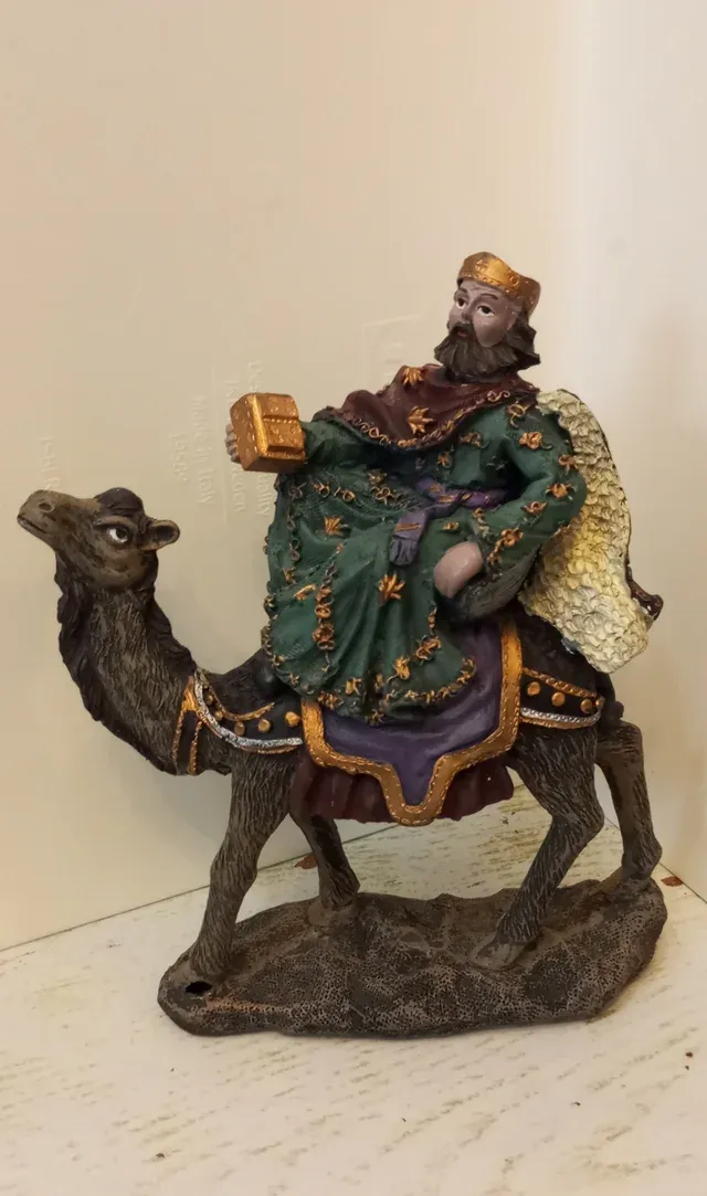 Detalles del productoFigura decorativa de un Rey Mago de la marca Atosa, montado sobre un camello. Ideal para coleccionistas o decoración navideña.