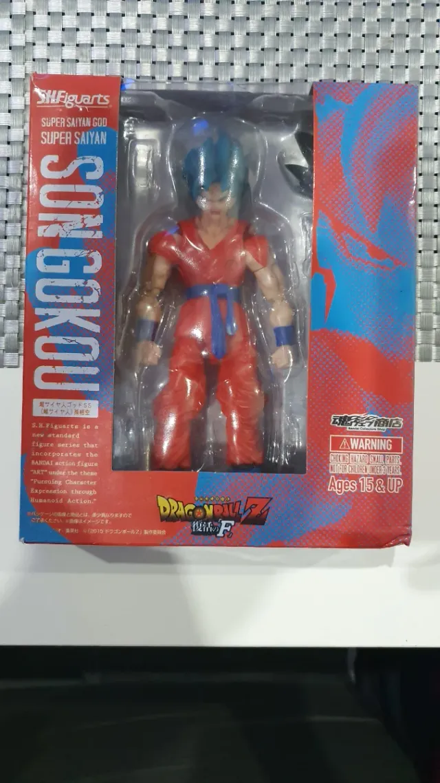 Detalles del productoFigura de acción de Son Goku en su transformación Super Saiyan God Super Saiyan de la línea S.H.Figuarts.
