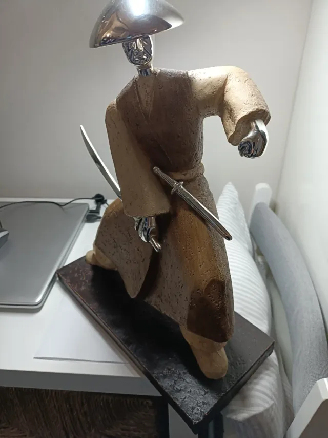 Figura decorativa de un guerrero samurái con su espada. - Diseño detallado. - Acabado color metálico y texturizado.