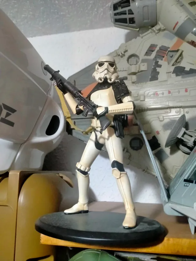 Figura de acción de Sandtrooper de Star Wars. - Detallado diseño del personaje. - Incluye arma. - Base expositora.