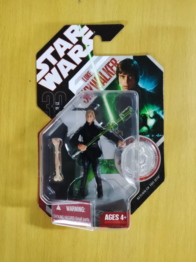 Figura de acción de Luke Skywalker de Star Wars. - Incluye sable de luz verde. - Accesorios. - Empaque original. - Apto para mayores de 4 años.