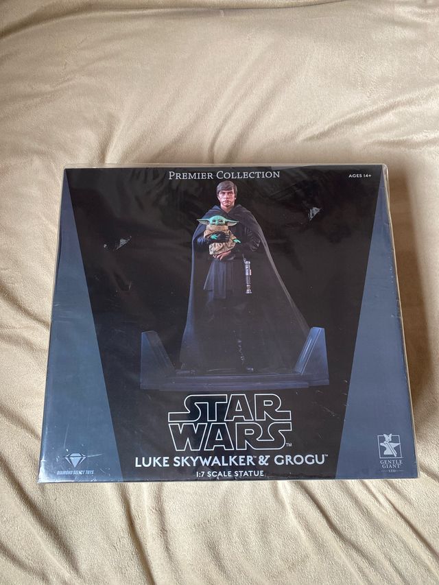 Figura de colección Premier de Luke Skywalker y Grogu de Star Wars. Réplica a escala 1:7.