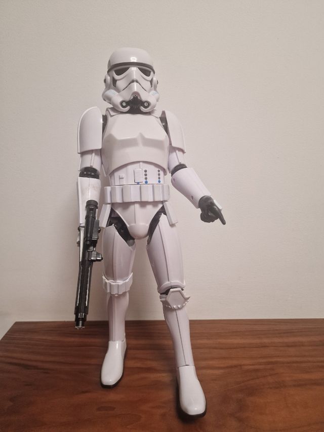 Figura de acción de un Stormtrooper de Star Wars, listo para la acción. Altura 40 cm - Detallado traje blanco. - Incluye rifle bláster.