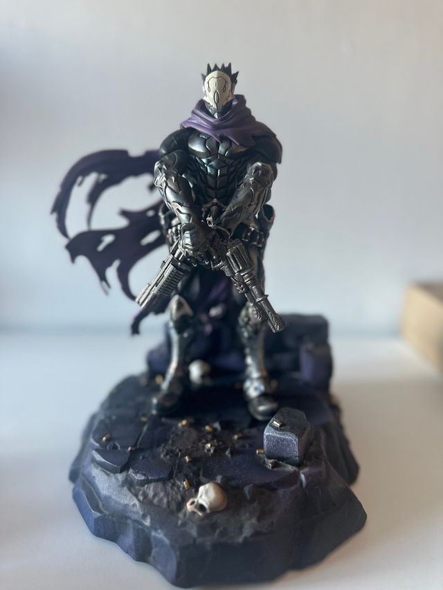 Detalles del productoFigura coleccionable de Strife, uno de los Jinetes del Apocalipsis, del videojuego Darksiders Genesis. Representa al personaje con su armadura detallada y sus icónicas pistolas.