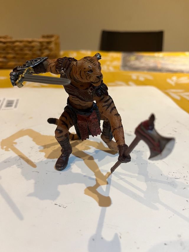 Detalles del productoFigura de acción detallada de un guerrero con cabeza de tigre. Ideal para coleccionistas.