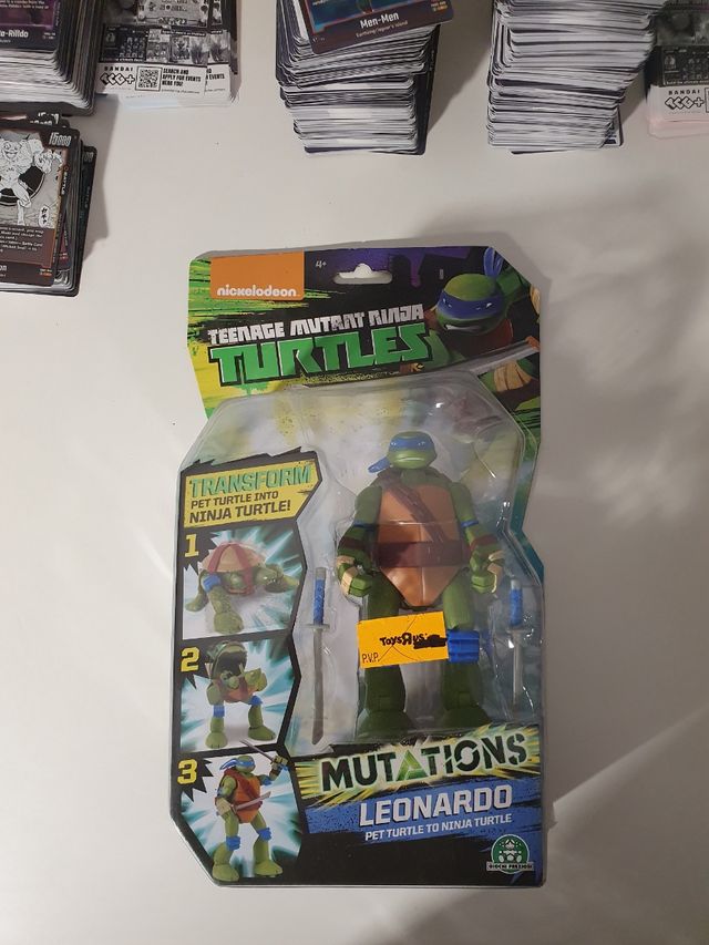 Detalles del productoFigura de Leonardo de las Tortugas Ninja Mutantes Adolescentes de Nickelodeon. Es una figura de acción de Leonardo que se transforma de tortuga a ninja.