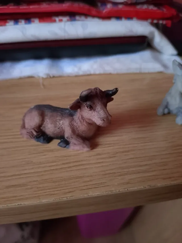 Conjunto de figuras para el Belén. - Figura de un toro. El Buey - Figura de un vaca. La Mula