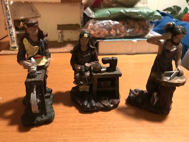 3 figuras de Herreros para belen navideño de 11’5 cms. Resina y en buen estado