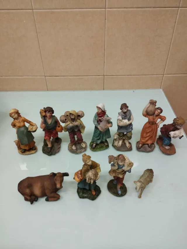 - Todas las figuras son de resina excepto la oveja que es de plástico..