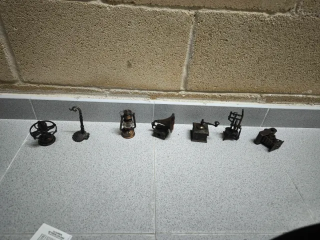 Detalles del productoConjunto de figuras de colección de sacapuntas de la marca Playme. Cada figura representa un objeto antiguo en miniatura.