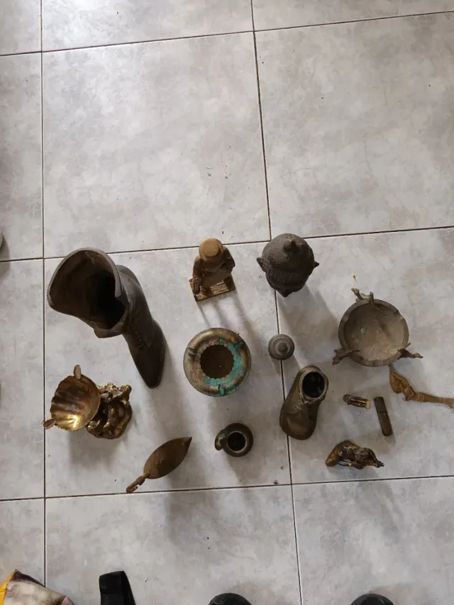 Conjunto de figuras decorativas antiguas, elaboradas en latón (bronce). - Piezas de colección. - Diseño detallado.